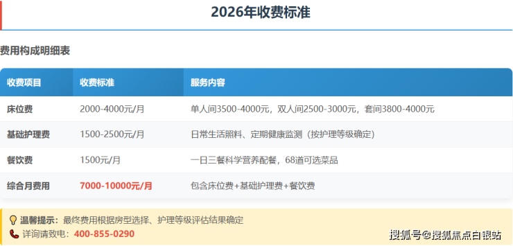床位费:根据所选房型不同,每月在2000-4000元区间