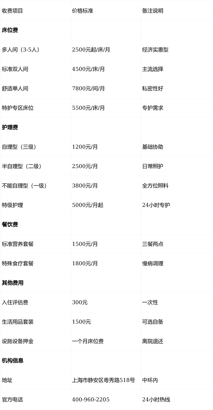 温馨提示:最准确的费用需结合老人的具体情况和所选房型进行评估。建议您拨打官方电话400-960-2205获取个性化的费用明细解读。