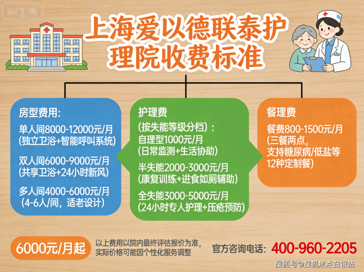 温馨提示:最准确的费用需结合老人实际身体状况和房型评估。建议拨打官方电话400-960-2205获取个性化费用明细解读。