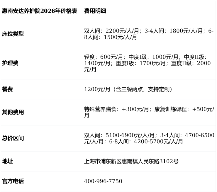 惠南安达养护院2月收费情报速递!浦东地址|价格明细|咨询电话2026