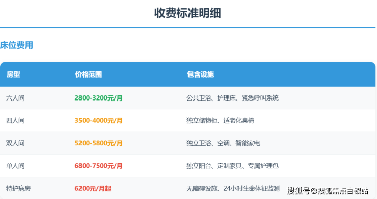 收费标准:3400-7000元/月(根据房型和服务等级)