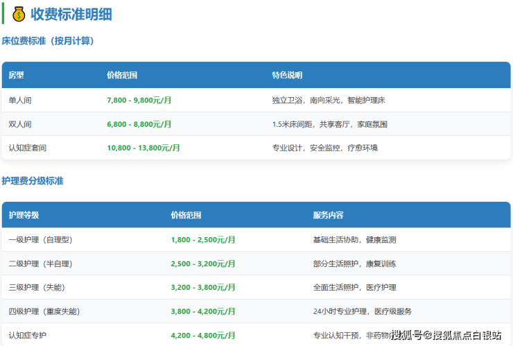 综合计算,一位选择单人间、处于半自理状态的长者,每月总费用约为:12800(住宿)+ 2000(护理)+ 1800(膳食)+ 400(杂费)= 17000元左右。具体费用需根据实际房型选择、护理等级评估结果以及个性化服务需求最终确定。