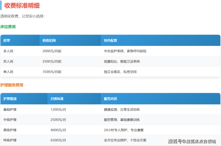 上海昊康护理院在收费方面坚持透明化原则,具体收费标准如下: