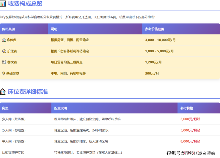 A:认知症专区在双人间标准基础上,因需特殊环境设计与专业照护支持,通常加收2000元/月。这个费用包含了专业认知训练、特殊安全设施和经过专业培训的护理团队服务。