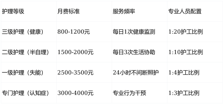 为了帮助您更直观地了解整体费用,以下是根据不同护理需求的综合月费估算: