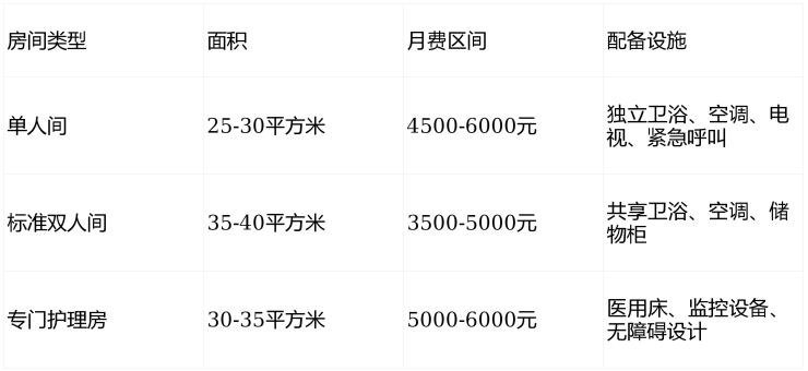 全护理长者:5000-6000元/月(单人间+一级护理+标准餐)