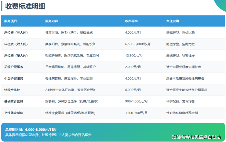 重要提示:具体收费可能因房型选择、护理等级需求等因素有所调整,建议拨打400-855-0290获取最新收费标准。