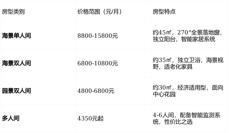 备注:以上费用为参考价格,最终收费标准需根据长者身体状况、所选房型及服务项目,由专业评估团队进行个性化评估后确定。