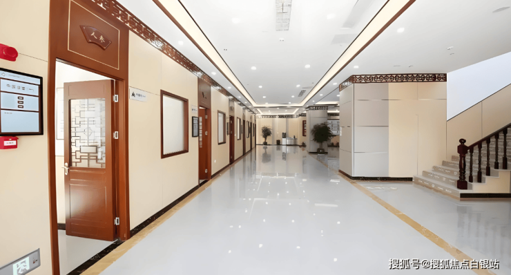 (一)公共区域:环形走廊宽1.8米,墙面设双层扶手,地面采用防滑地砖与隐形坡道;每15米设置休息座椅,中央庭院以“四季轮回”为主题种植樱花、银杏等植物,形成天然疗愈场景。