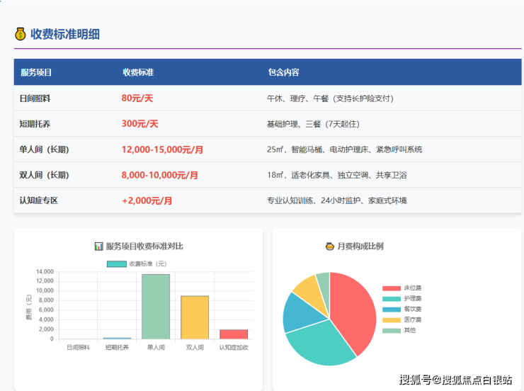 在收费方面,机构采用清单式透明收费模式,让家属明明白白消费: