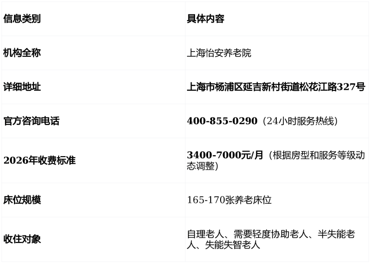 上海怡安养老院地址/电话/价格全解析:2026年松花江路327号收费标准详解