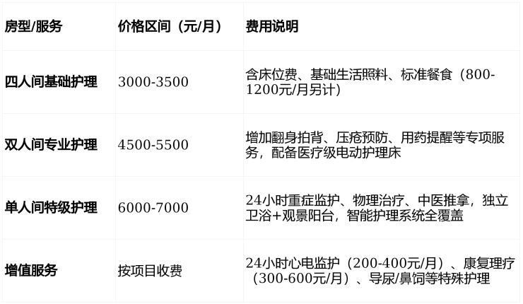 收费价格:3000-7000元/月(按房型与服务等级差异化定价)