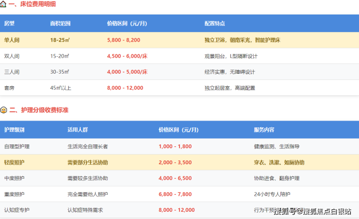 舒适型:6500-9500元(双人间床位+半失能护理+定制餐饮)