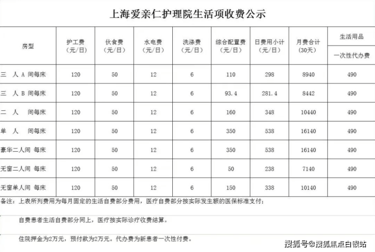 爱亲仁护理院采用透明化的分级收费模式,具体价格明细如下: