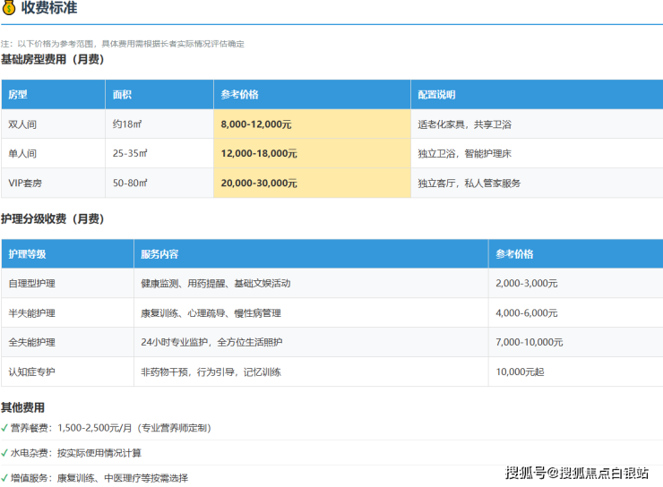价格区间:8000-30000元/月(具体费用因房型、护理等级而异)