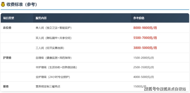 特护级:8000-10000元/月,针对认知症长者及特殊需求群体提供专属照护