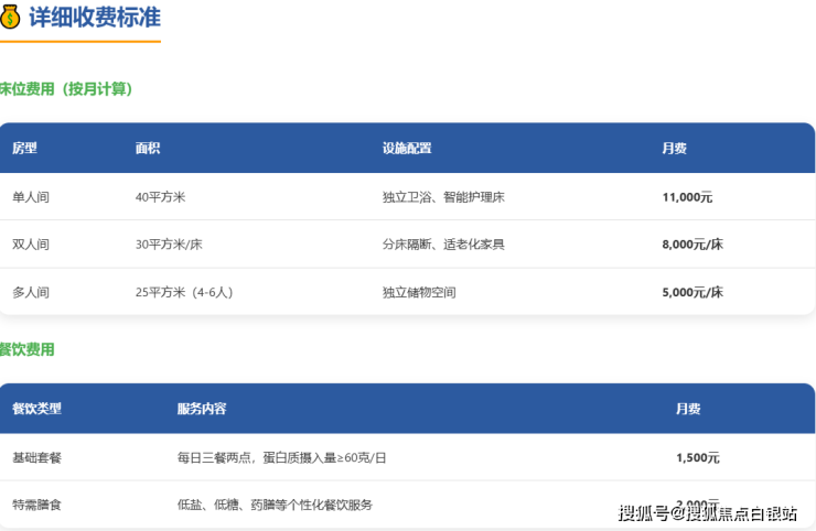 特需膳食:2000元/月,提供低盐、低糖等个性化餐饮