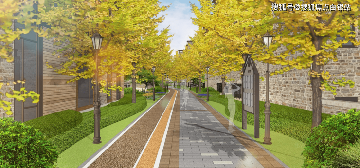 原乡别院、北法风格原石建筑、小镇广场、道路村口、精神堡垒等代表吉维尼气质的标志性建筑元素,结合风情植物