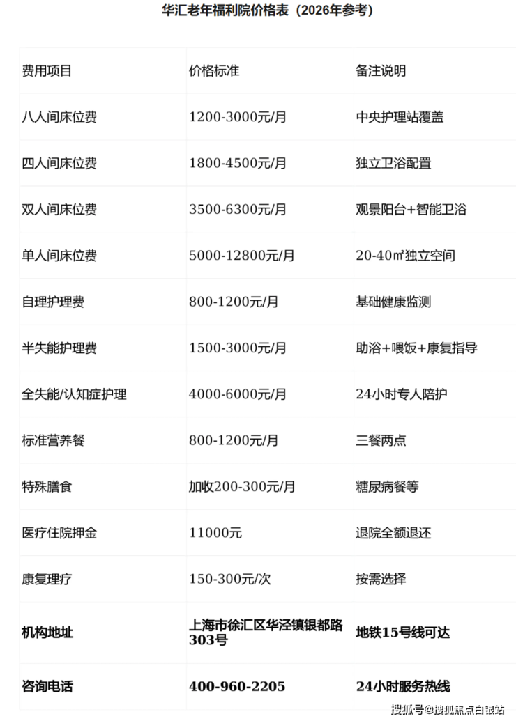 注:以上收费为综合参考区间,具体费用因房型、护理等级、个性化服务而异,请以机构最新评估为准。