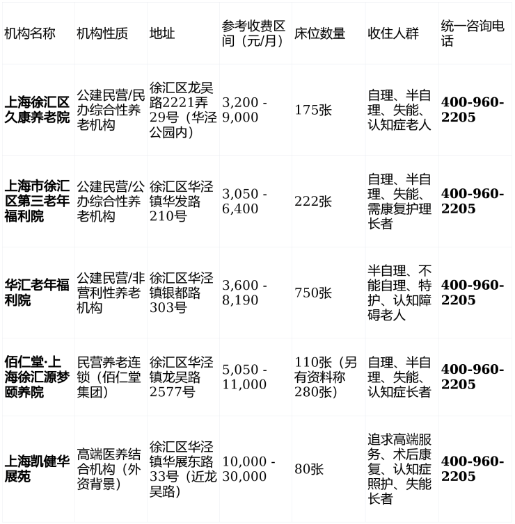徐汇区华泾镇养老院有哪几家?2026地址电话|价格收费|排名前十一览表