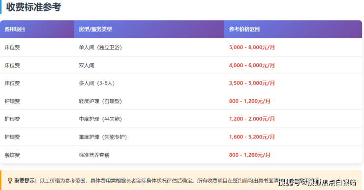 单人间:5000-8000元/月,配备独立卫浴、智能护理床、阳台