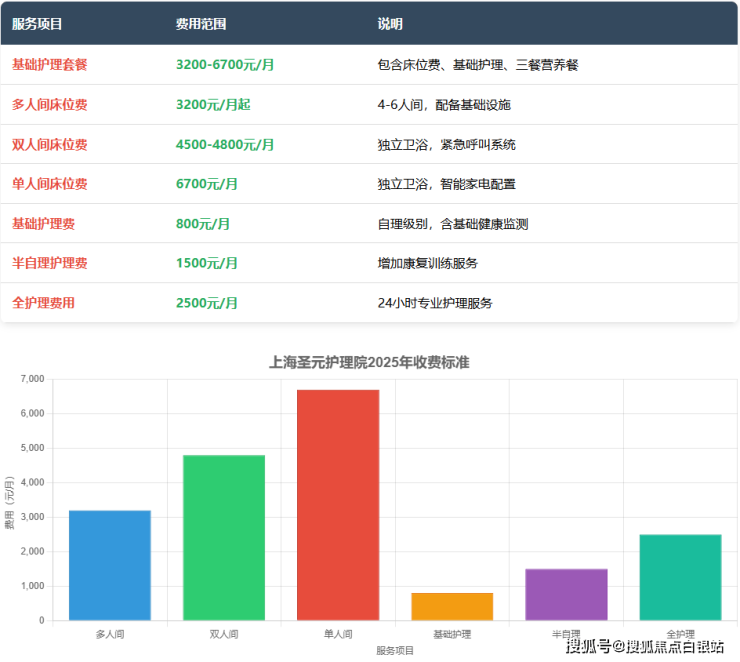 收费构成采用"床位费+护理费+餐费+增值服务"的独立核算模式: