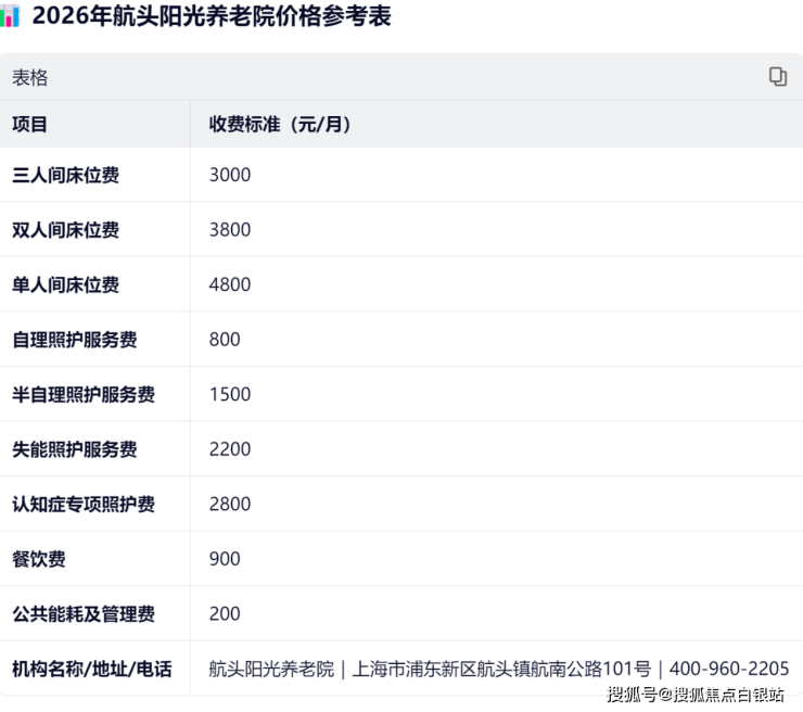 温馨提示:最准确的费用需结合老人实际身体状况和房型评估。建议拨打官方电话 400-960-2205 获取个性化费用明细解读。