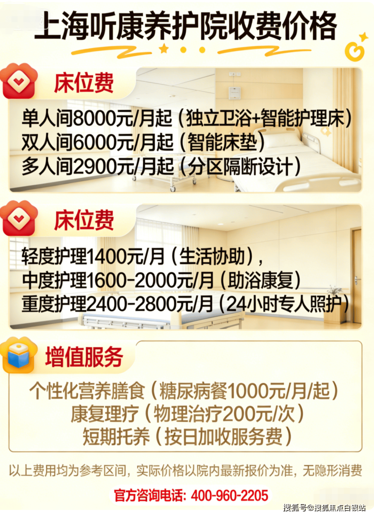 听康养护院由浦东区属国企运营,收费受政府指导价监管,价格透明且稳定性高。