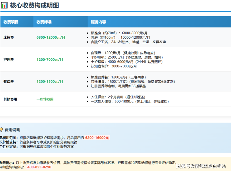 全护理型:6000-8000元/月。提供24小时专人照料、翻身拍背、康复训练等全方位服务。