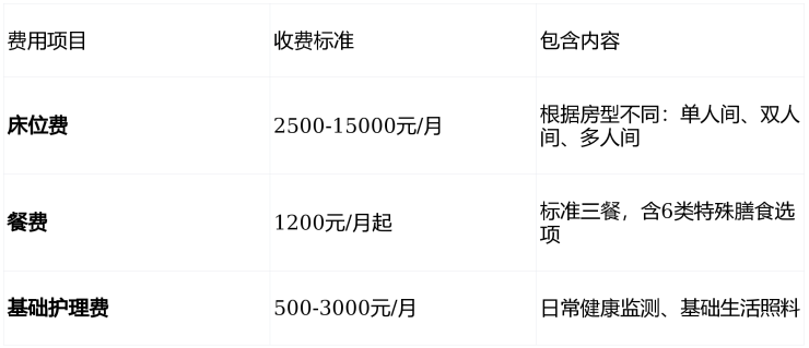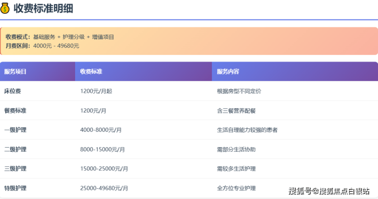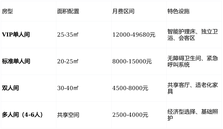 收费区间:4000-49680元/月(根据房型、护理等级及服务内容差异)