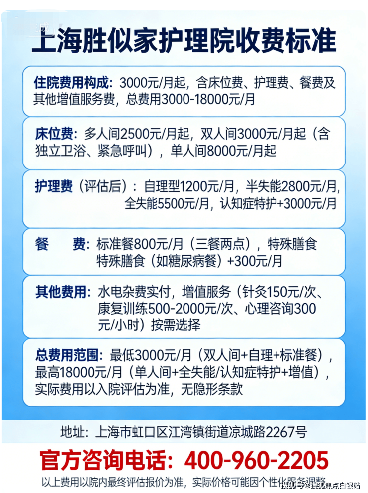 二、上海胜似家护理院收费标准:透明拆分,无隐形消费💰