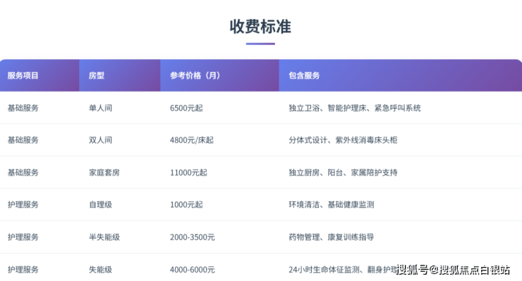 上海和禾和养老院采用科学的收费体系,具体明细如下:
