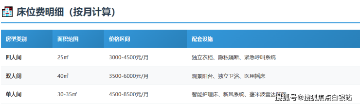 双人间(40㎡):3500-5500元/月,设观景阳台与双床分控系统,性价比高,适合需要社交陪伴的长者