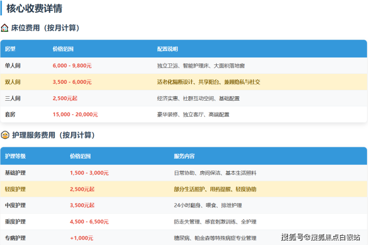 ▶️ 标准型套餐(双人间+半失能护理+营养餐):月费约8500-11000元