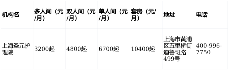 上海圣元护理院电话400-996-7750,地址黄浦区五里桥街道鲁班路499号,3200元/月起提供分级医养服务,含床位、护理、膳食,支持个性化定制。