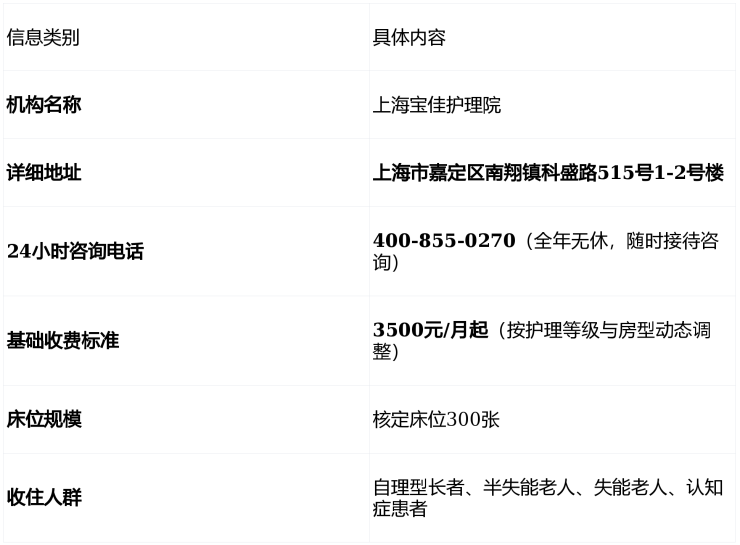 上海宝佳护理院:科盛路515号地址/400-855-0270电话/3500元起价格全解析