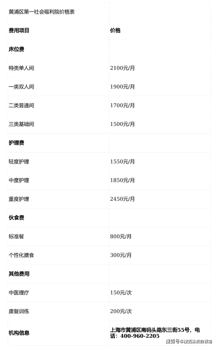 💰 黄浦区第一社会福利院收费明细:透明分级,无隐形消费