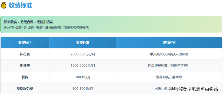 一位选择双人间、需二级协助照护的长者,月综合费用约为:床位费4000元 + 护理费2200元 + 餐费1000元 =7200元左右。