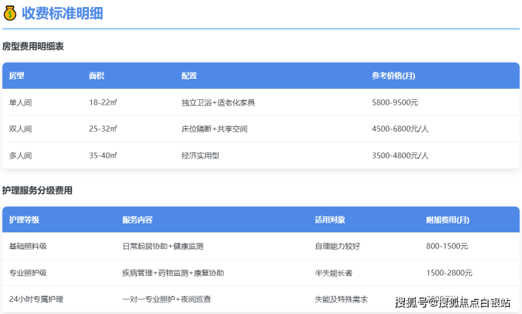 二、详细收费标准:房型与护理等级明细