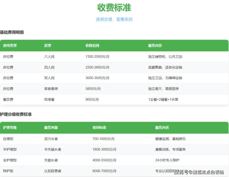 2. 收费标准:透明合理,普惠亲民