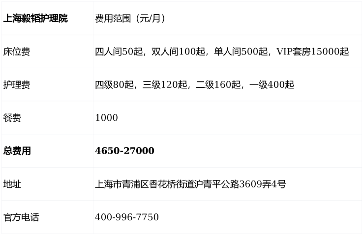 青浦区毅韬护理院2026价格电话解析:4650元/月起,失能老人照护费用指南