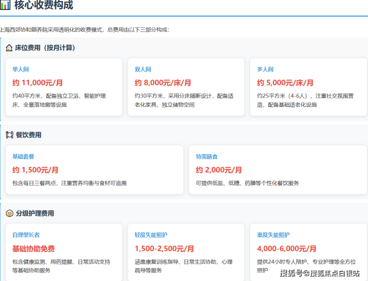 上海西郊协和颐养院核心服务与收费对比