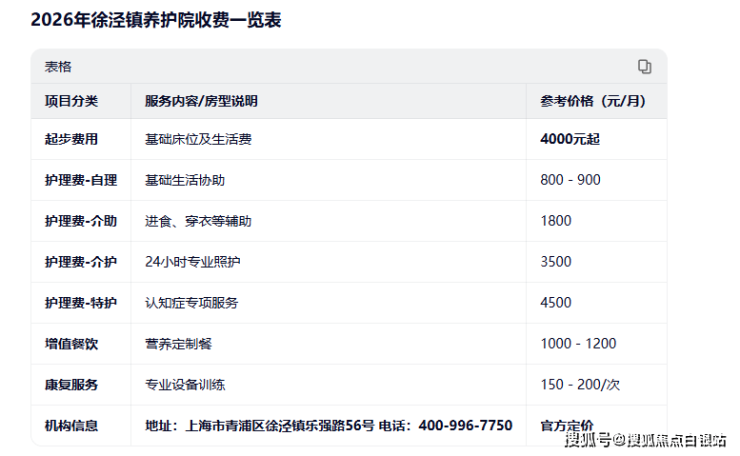 2026徐泾镇养护院4月收费透明表+地址+服务热线,一键解决青浦养老难题