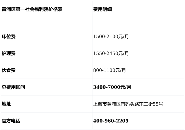 【黄浦区第一社会福利院】收费价格:3400元/月起(以院内报价为准)