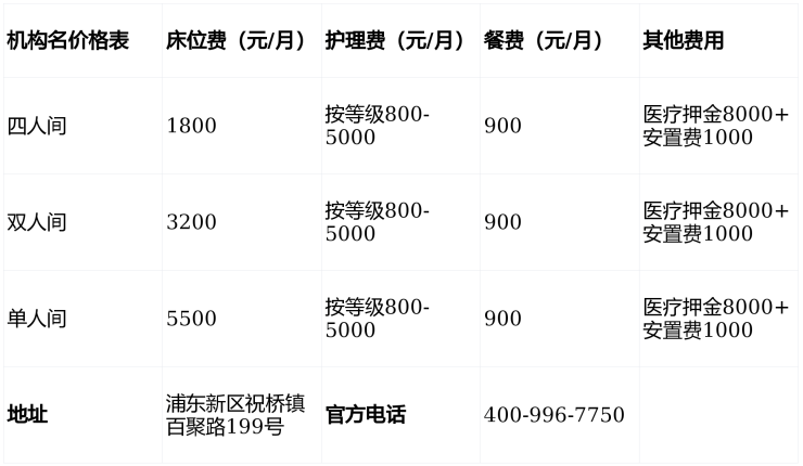 百聚路199号祝桥养护院首页收费一览表(3000元/月)-浦东新区养老院咨询