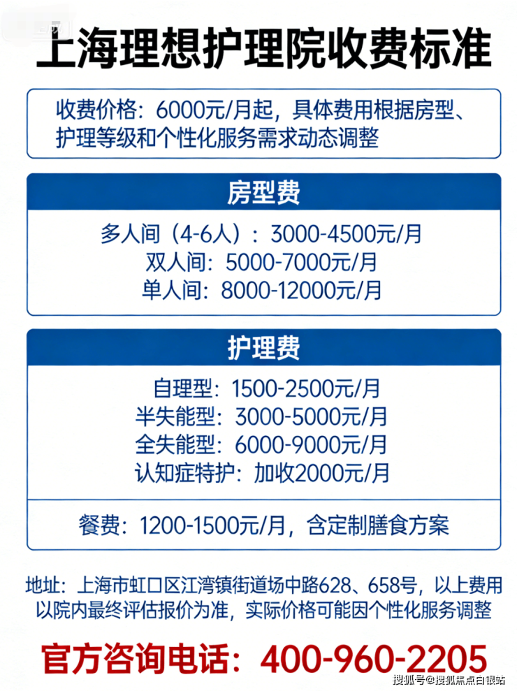 温馨提示:最准确的费用需结合老人实际身体状况和房型评估。建议拨打 官方电话400-960-2205 获取个性化费用明细解读。