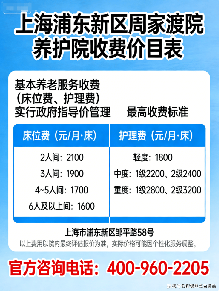 温馨提示:最准确的费用需结合老人实际身体状况和房型评估。建议拨打 400-960-2205 获取个性化费用明细解读。