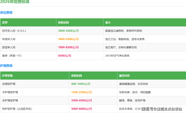 特护型护理(认知症专区):5000-6000元/月(含防走失系统、行为干预)