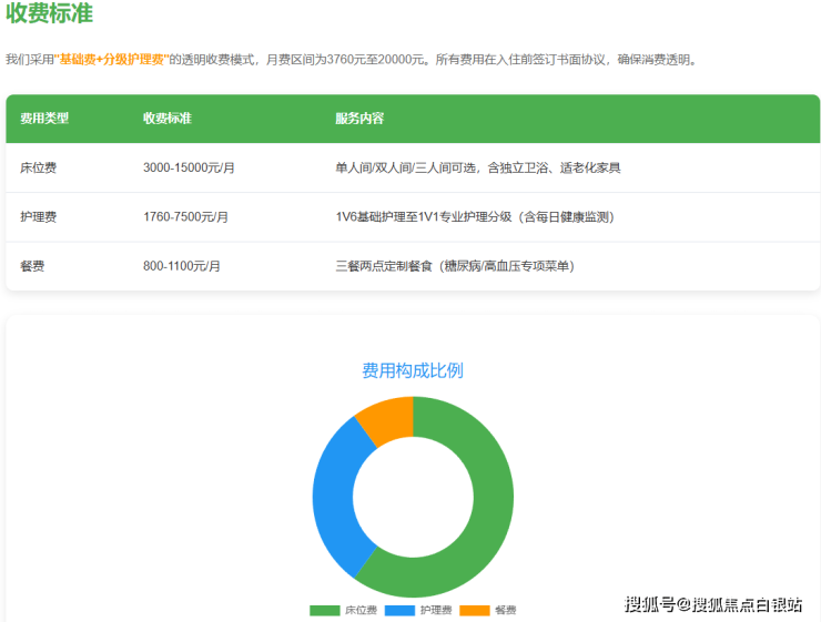 在收费方面,香树湾护理院采用清晰透明的"床位费+护理费+餐费"模式: