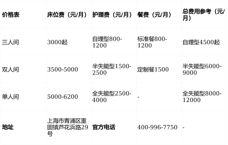 重固镇福泉养护院电话400-996-7750,地址上海市青浦区重固镇芦花浜路29号,3500元/月起提供分级医养服务,298张床位覆盖全周期需求,欢迎致电咨询或预约参观!